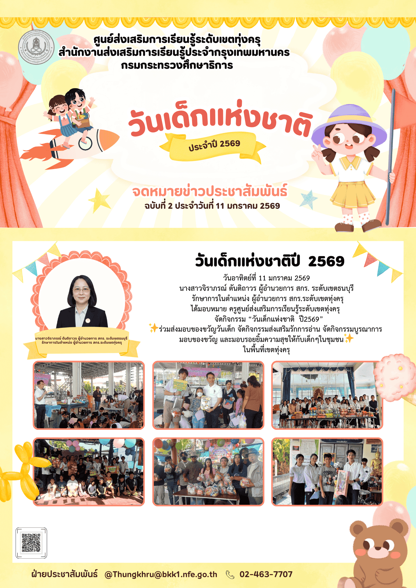 จดหมายข่าว ฉบับที่ 2 วันที่ 11 มกราคม 2569 กิจกรรมวันเด็กแห่งชาติปี 2569